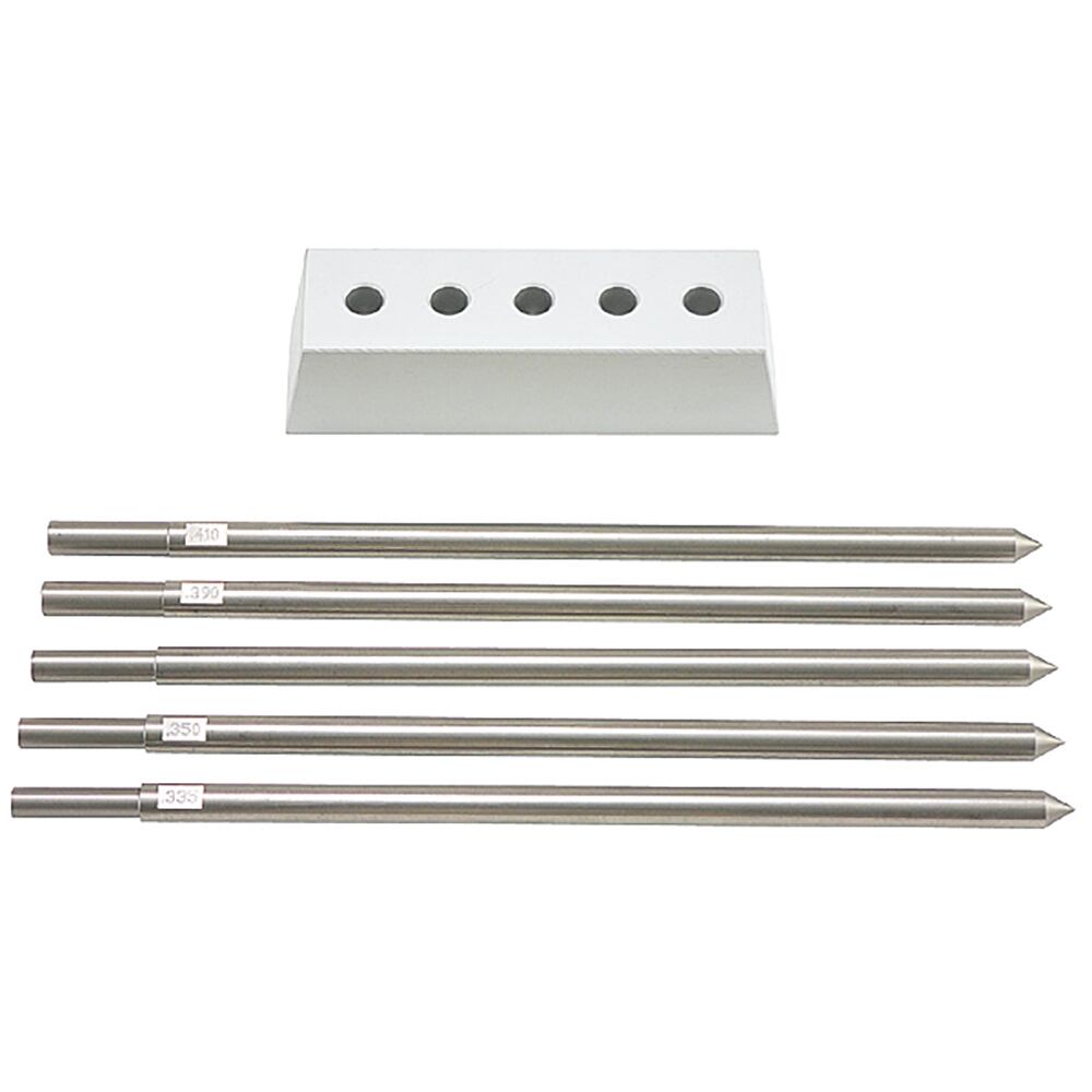 ●セット内容:ゲージ5本セット(0.335インチ(8.5mm)用、0.35インチ(8.9mm)用、0.37インチ(9.4mm)用、0.39インチ(9.9mm)用、0.41インチ(10.4mm)用)、台座